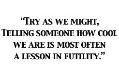 I was glad to hear about a client's interest in culture. In my mind culture is fundamental to doing good business, and I agree that finding a way to communicate the essence of a firm's culture beyond the circle of existing clients is key to influencing prospects and talent through marketing efforts. But try as we might, telling someone how cool we are is most often a lesson in futility.