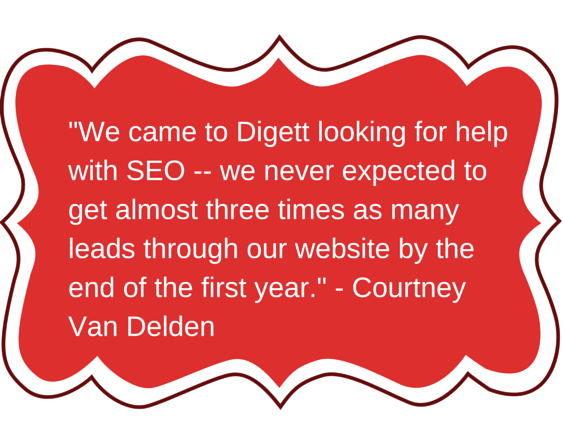 “We came to Digett looking for help with SEO — we never expected to get almost three times as many leads through our website by the end of the first year. Digett has made the complex seem simple; they show us every month exactly what results we're getting for our money.” — Courtney Van Delden