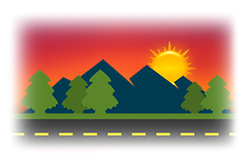 So how does this translate to the web? Basically, we slice up the scene into layers. The stripes on the road, the trees, the mountains and the sun all become a separate background image. Then, as the user scrolls through the website, the layers move at different speeds, creating a perception of depth.