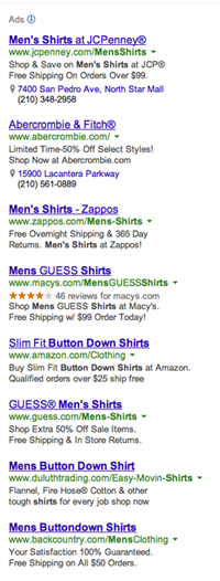When I search for “men's button-down shirt,” below are the ads that generated with those keywords: