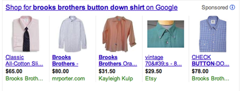 So instead of “men's button-down shirt” I might now change my search query to “brooks brothers button-down shirt”. What happens to those Google Search results I showed earlier?