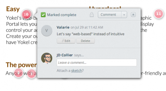 - Team members to easily comment on portions of a design