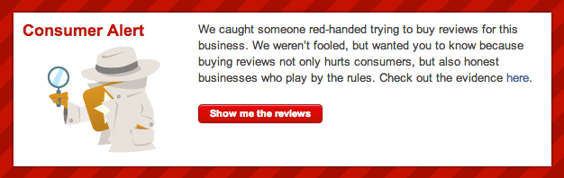 Posing as “reviewers for hire,” Yelp employees responded to Craigslist ads offering payment in return for positive reviews. What they posted instead was a warning to site visitors that the business had tried to buy reviews: